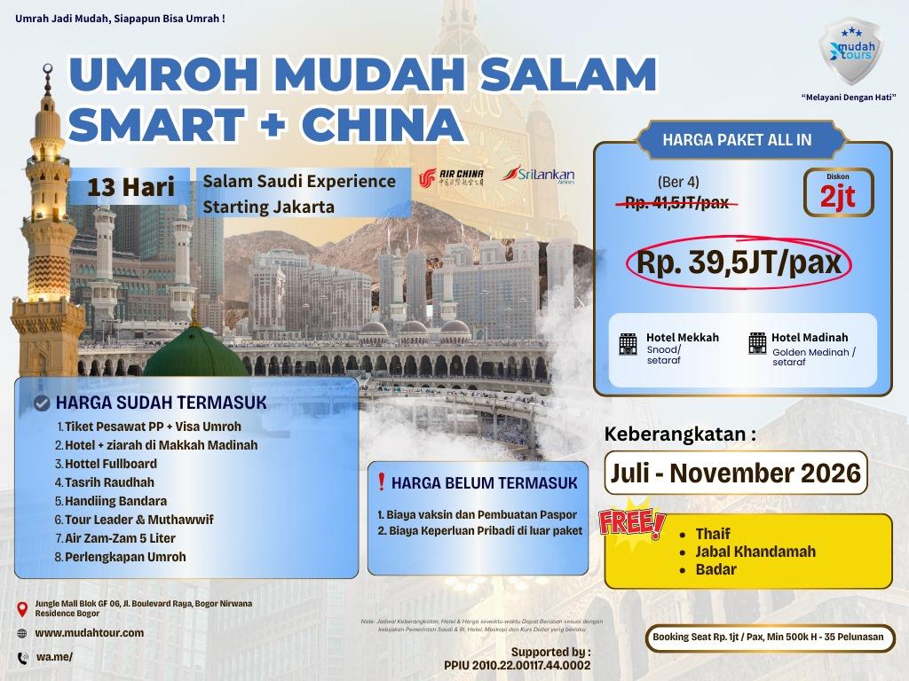 UMRAH MUDAH SALAM SMART PLUS CHINA (SAUDI EXPERIENCE)